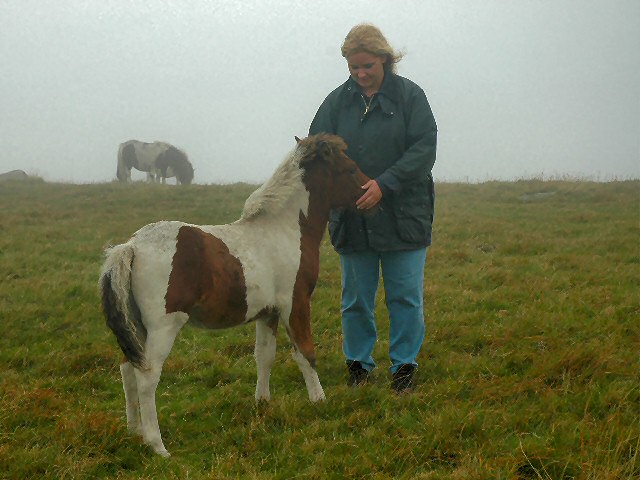 Dartmoor-Ponies im Nebel