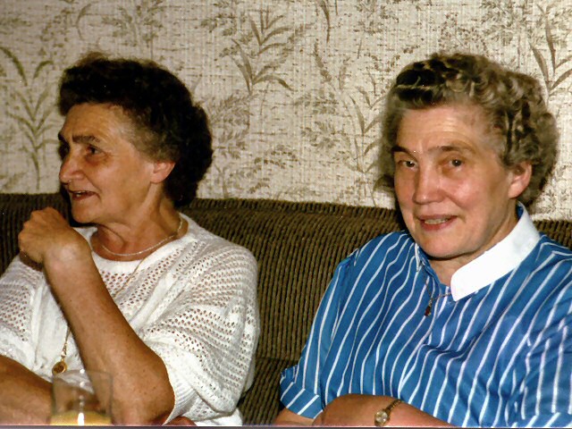Tante Elfriede (Potrykus) und Gastgeberin Tante Grete Frischemeier (beide Hildes ältere Schwestern) haben sich bereits auf das Sofa zurückgezogen. |